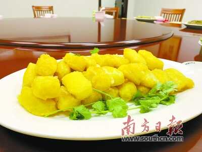 不过张恩华没有满足。他天天待在厨房里,尝试研究蕉芋粉的各种做法。在信宜“粤菜师傅”特色菜研发中心的帮助下,蕉芋籺、蕉芋卷、炸蕉芋、牛奶蕉芋、生汤蕉芋……越来越多的蕉芋粉系列特色菜被研发推出。