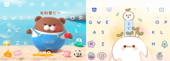 除此之外,还有帕比熊、长草颜团子、斑布猫、萌芽熊、TWINDUCK 双胞胎鸭等一众萌物皮肤上线百度输入法,帕比熊给你比心、颜团子逗你开心,突破次元壁的动漫IP帮你在这沉闷的夏日寻找乐趣。