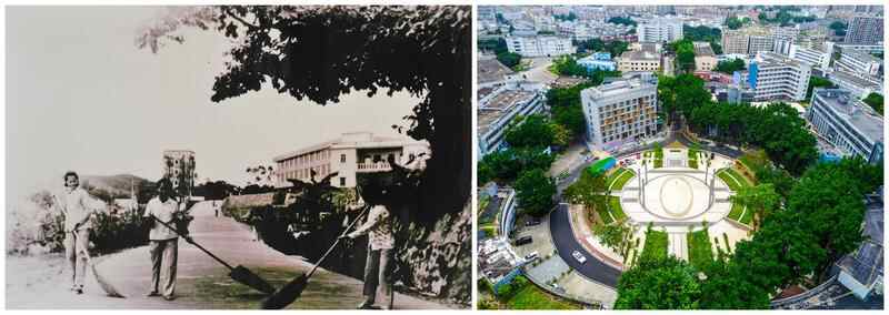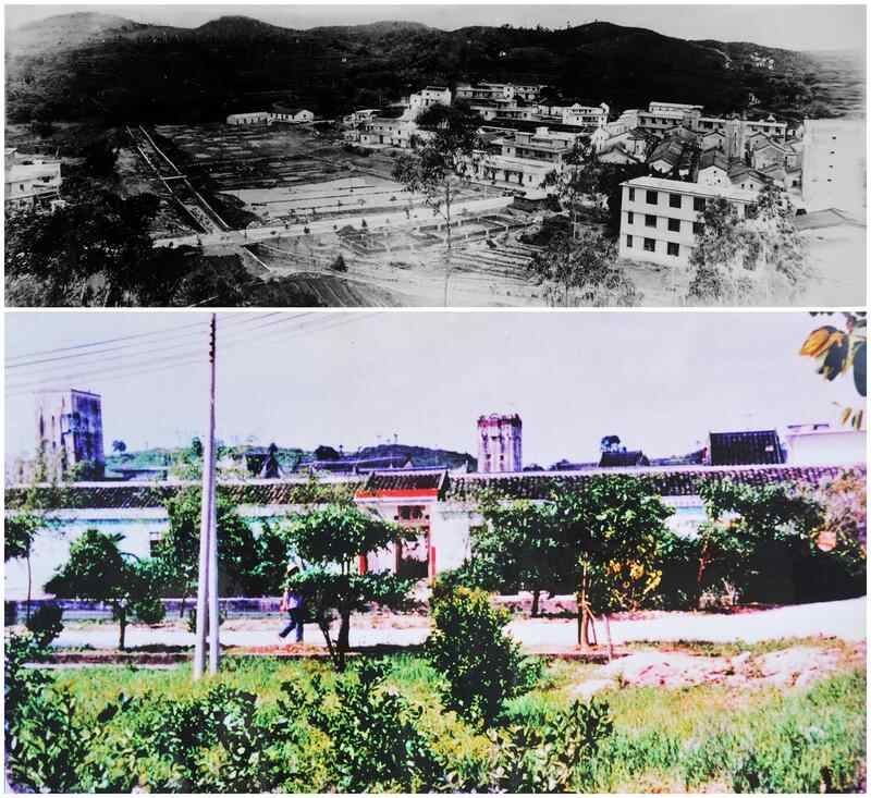 上图:改革开放初期,正在建设中的南岭村(摄于1983年);下图:初沐改革开放春风的南岭村,处处呈现出勃勃生机。
