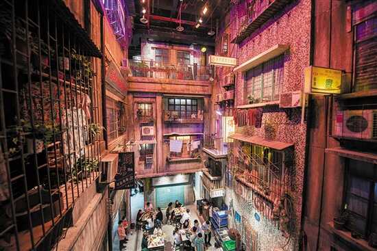 超级文和友负责人告诉记者:“我们二楼有一处做旧的瓷砖墙,从表面上看好像落了厚厚的一层灰,但顾客用手触摸时是摸不到任何灰尘的。”记者在现场了解到,很多店铺内看似像是被油烟熏黑的天花板,其实是装修时特意打造出的效果。整个商场内部呈现出的老旧、“脏乱”环境,实际却是严谨的做旧处理。超级文和友的“小心机”就体现在这一处处细节上。
