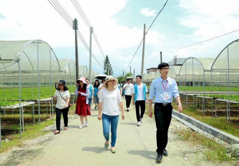 大部分调研团成员是第一次见到无土水培蔬菜,对蔬菜的种植及生产过程都十分感兴趣,也对基地采取的扶贫举措充满好奇。广州市越秀区财政局驻清远市龙山镇从化围村第一书记黄坤星耐心地向调研团介绍村内脱贫的基本情况,他提到,从化围村2016年被定为省定贫困村,建档立卡贫困户共有90户183人,由广州市越秀区财政局、中国银行清远市分行进行对口帮扶。作为佛冈县龙山镇重点扶贫产业项目之一,惟德现代农业蔬菜种植示范基地采用了“公司+基地+农户”项目运作模式,种植规模达150亩,吸纳了周边的农村劳动力40至60人,形成了一个公司受益、基地良性运转、农户受益的多赢局面。