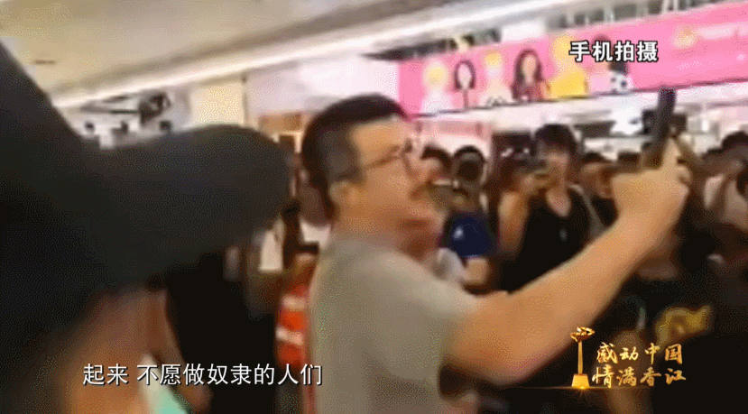 在商场中,见数百名黑衣人正在闹事时,李籍怀里抱着两岁多的小女儿,一双儿女躲在身后,他一遍遍高唱着国歌,有了直面暴徒的力量。