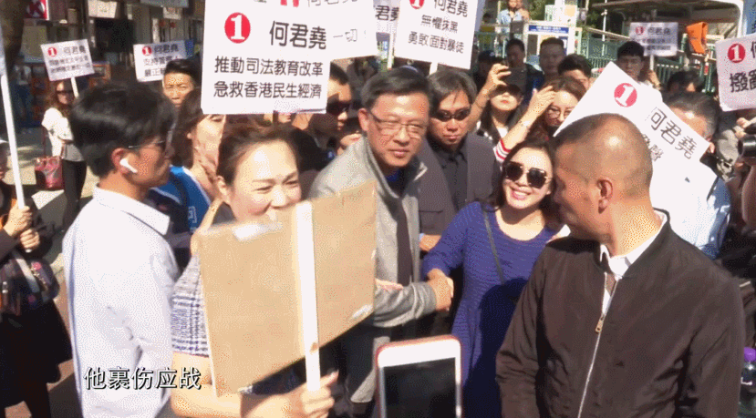 在街头遇刺后的第5天,他裹伤应战,再次走上屯门街头与市民见面。