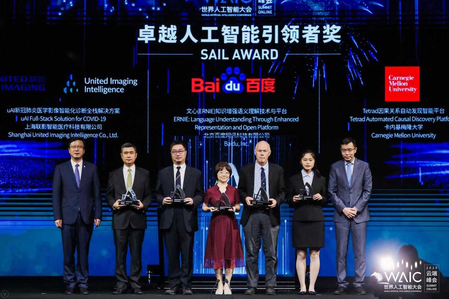 获得2020 SAIL奖的项目是:IBM Project Debater、联影智能uAI新冠肺炎医学影像智能化诊断全栈解决方案、百度文心(ERNIE)知识增强语义理解技术与平台、卡内基梅隆大学Tetrad因果关系自动发现智能平台、清华大学论文《忆阻器卷积网络的全硬件实现》。联影新冠肺炎医学影像诊断方案获2020 SAIL奖