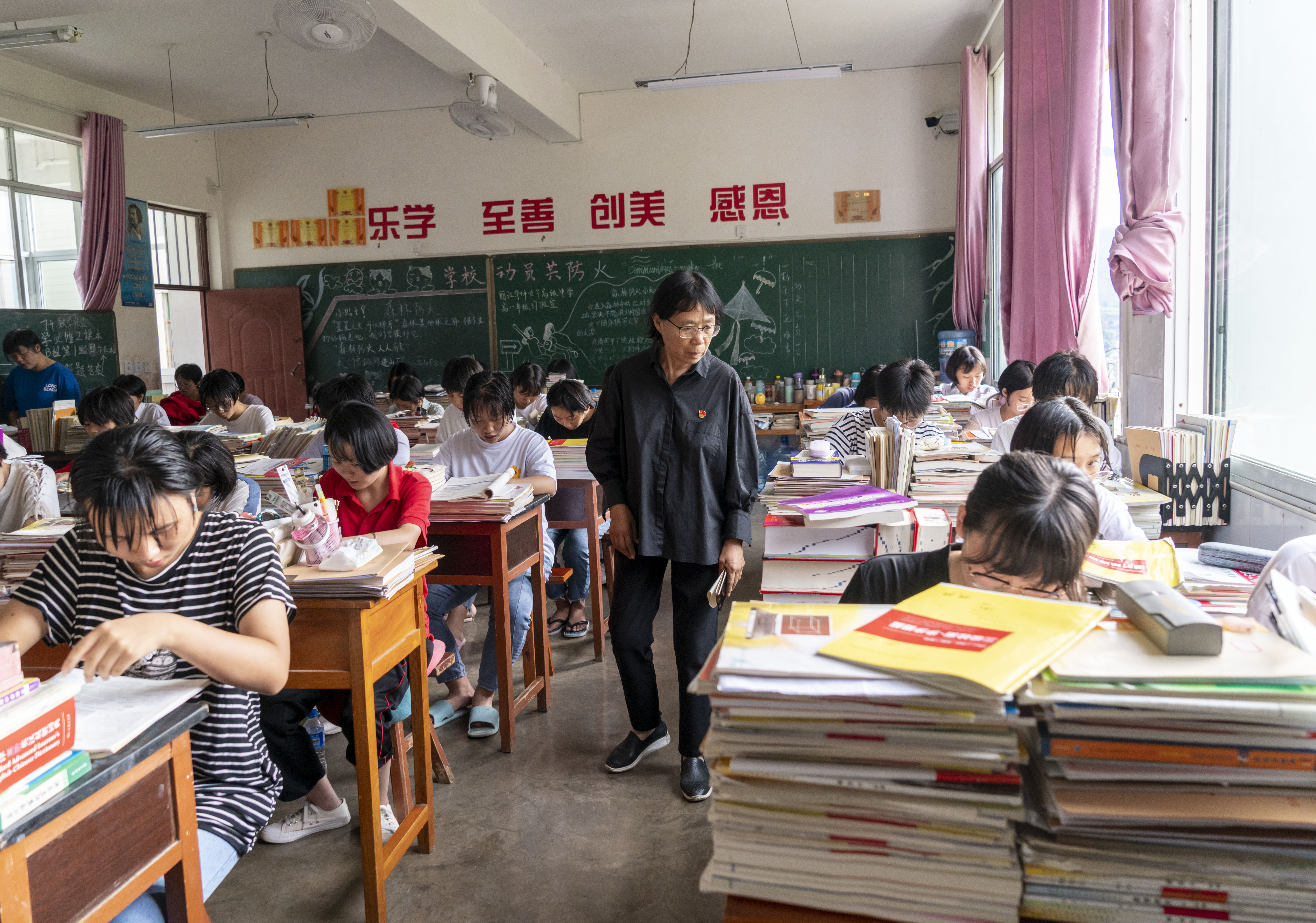 ↑张桂梅在检查学生上课情况(7月4日摄)。