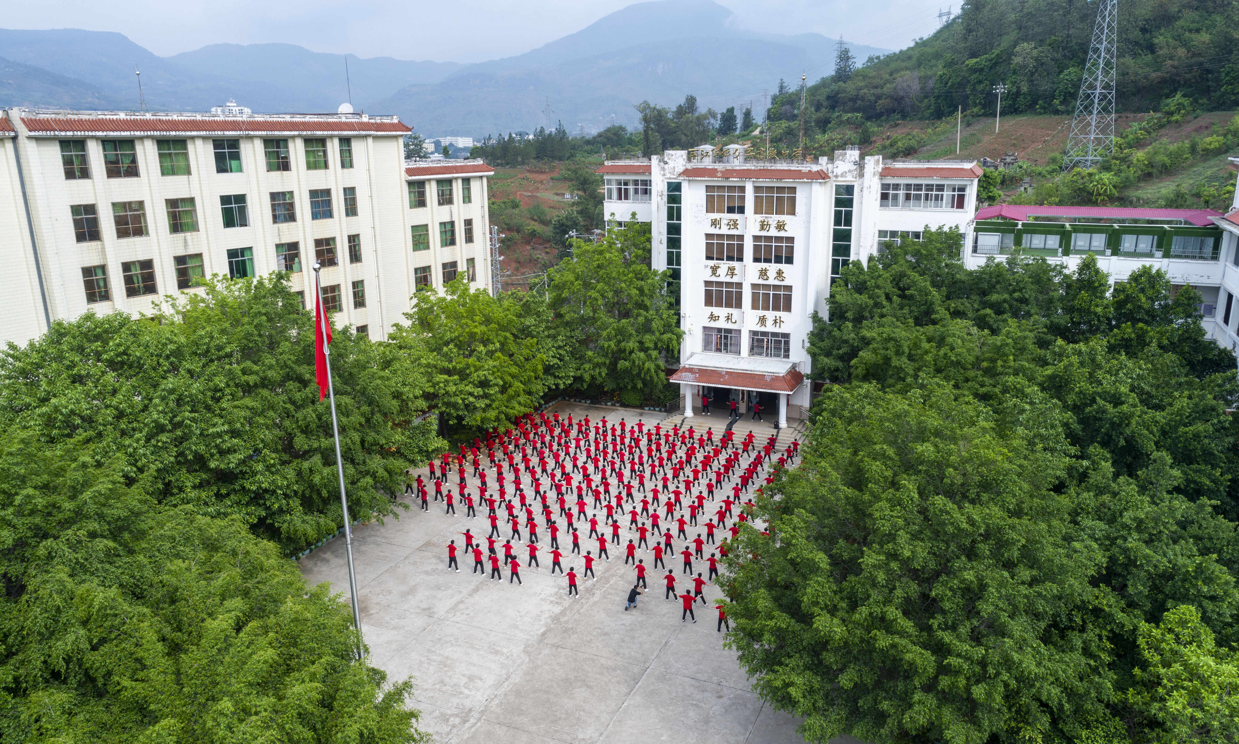 ↑云南丽江华坪女子高级中学学生在做课间操(7月4日摄)。