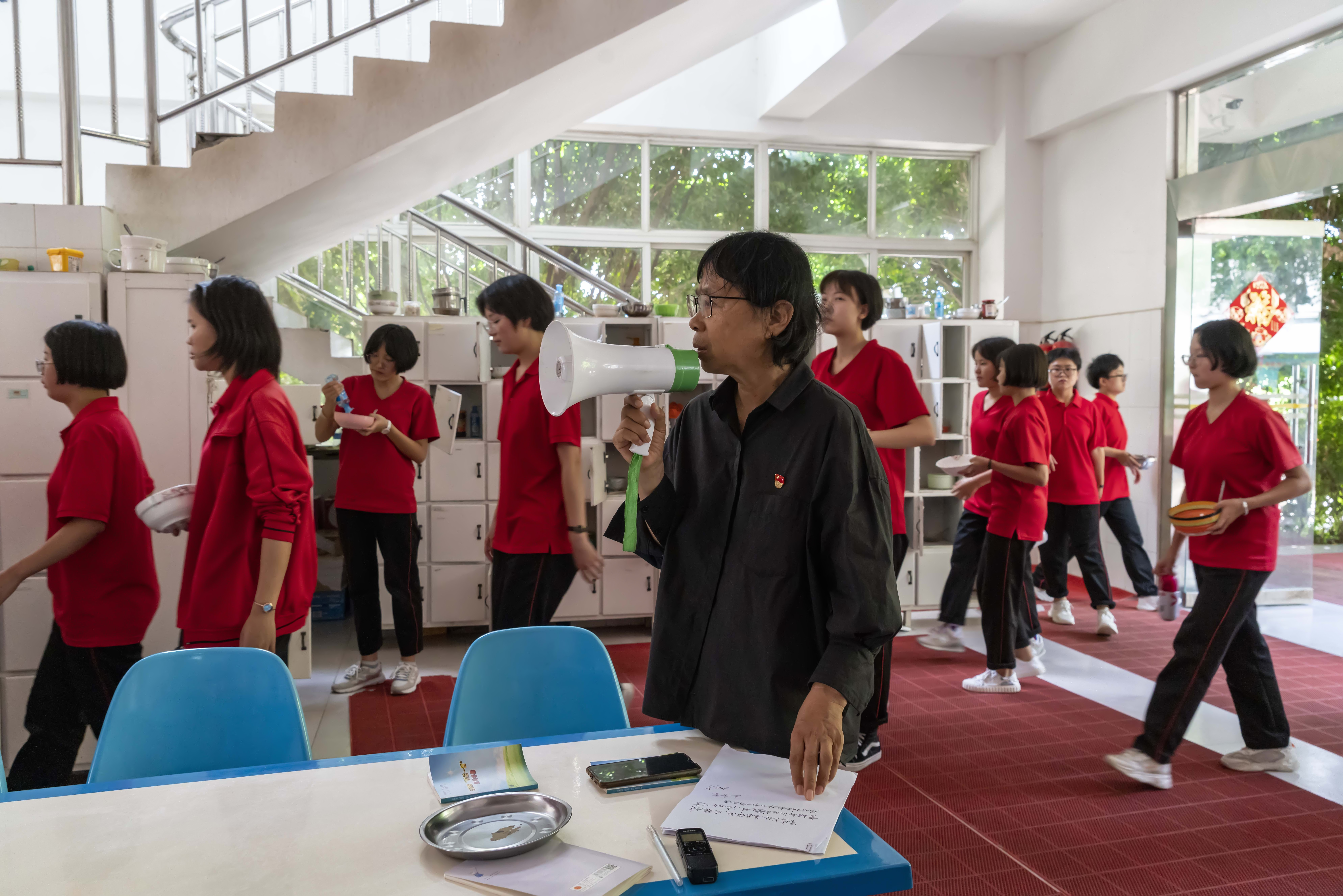 张桂梅对学生要求严格,华坪女高成立以来,她每天都会拿着小喇叭催促学生上课、吃饭、自习、做操。自2008年建校以来,已有1600多名大山里的女孩从这里考入大学。 新华社发(陈欣波 摄)
