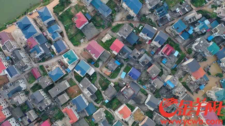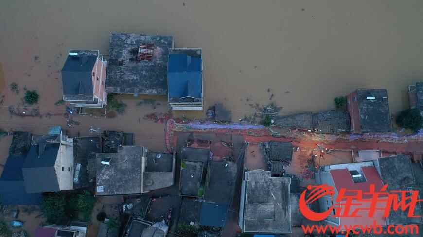 羊城晚报全媒体记者细数了一下,该村至少有几十座房屋泡在洪水中,基本上快淹没一楼,有些低矮的平房只露出了屋顶。