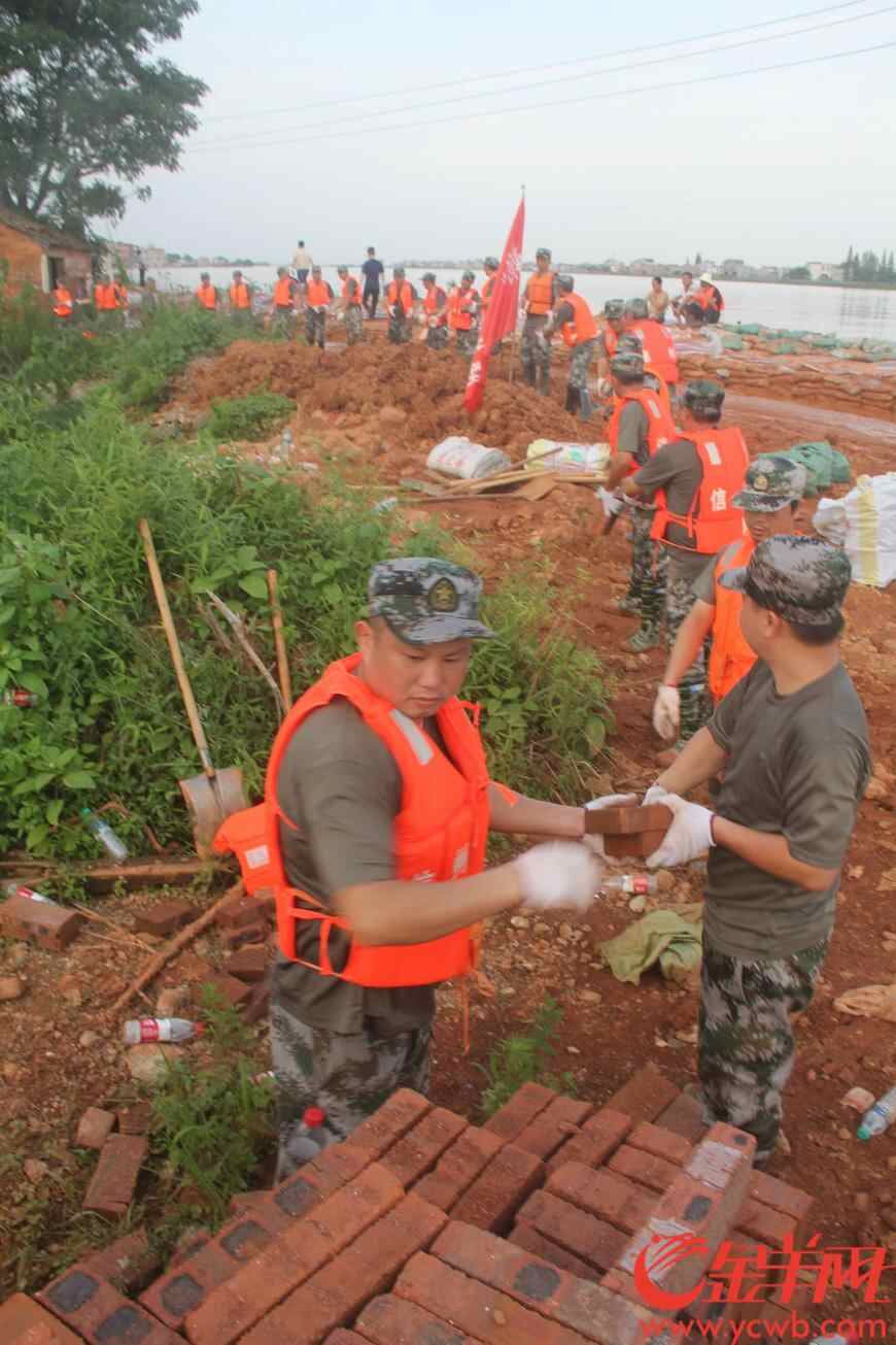 鄱阳县饶河联圩军民参加抗洪 羊城晚报全媒体记者 温建敏 摄
