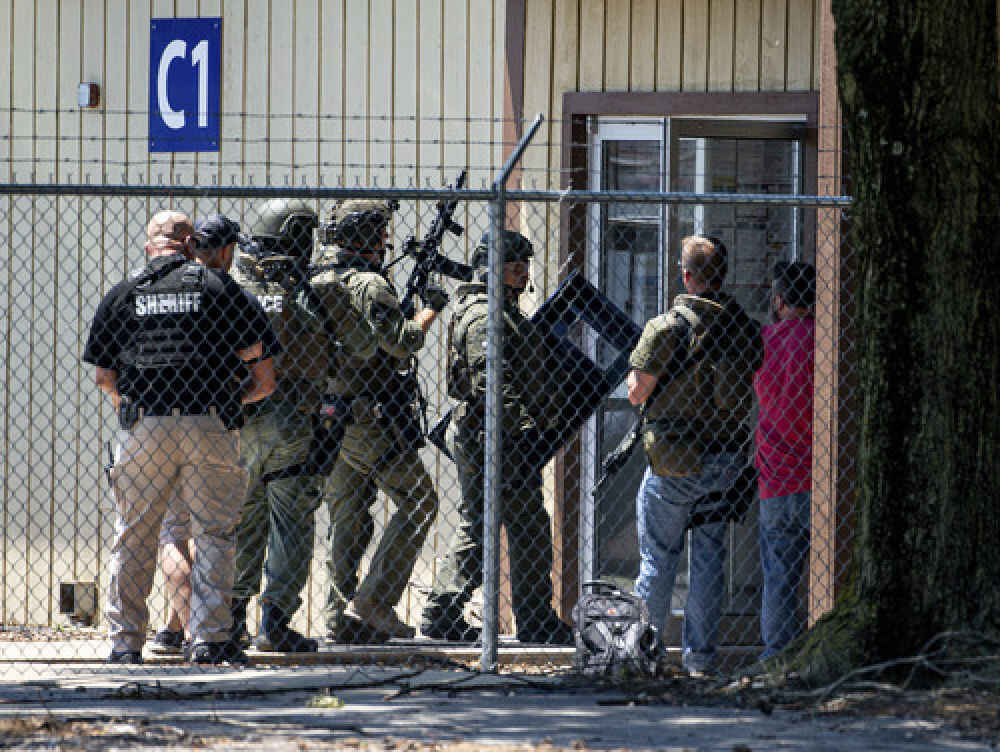 6月26日,美国伊利诺伊州一家工厂发生枪击事件,警方准备进入发生枪击事件的工厂。新华社/美联
