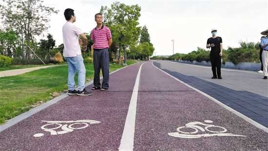 在江门市蓬江区潮连岛,江门人才岛的建设正如火如荼。而作为该项目的重要配套工程,一条人才岛环岛碧道正绕着潮连岛逐渐延伸。记者在现场看到,这条碧道环绕西江潮连围堤布置,碧道之外就是波光粼粼的西江。原来的西江潮连围堤,水泥路被改造成了慢行系统,包括跑步道、自行车道以及人行道等,碧道亲水处种植了水生芦苇,慢行系统旁边则布置了灌木类植物。沿着慢行系统散步,沿路设有自行车驿站,并巧妙运用模块化花箱、座椅廊架小品等进行不同形式的空间围合与排列,形成一条具有驻足、休憩文化、观赏等多功能的景带。据悉,这条环岛碧道设计总长约16公里,目前已经完成近6公里建设。