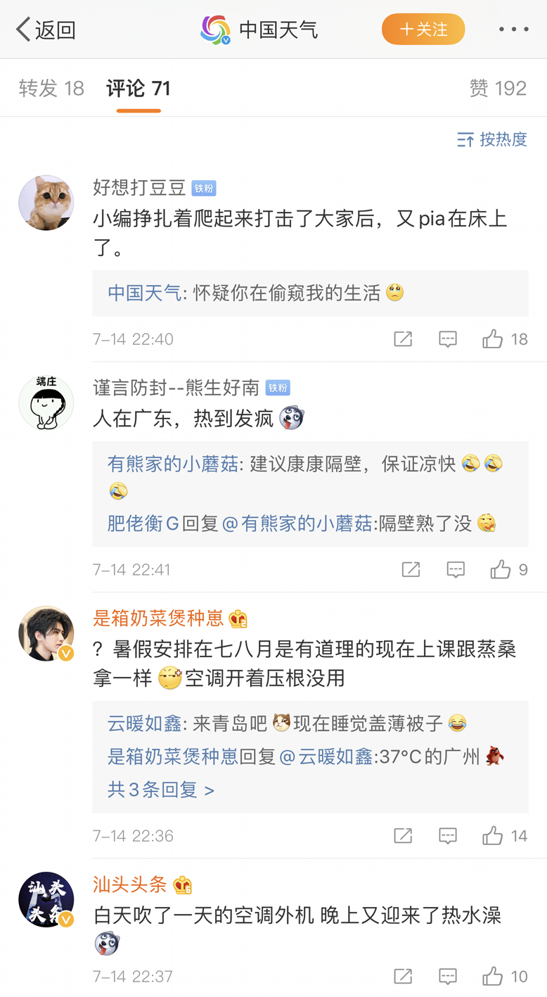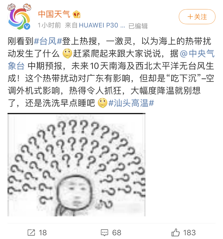 网友一边吐槽炎热,一边吐槽“台风胚胎”的“不争气”或“只争‘下沉气’”。
