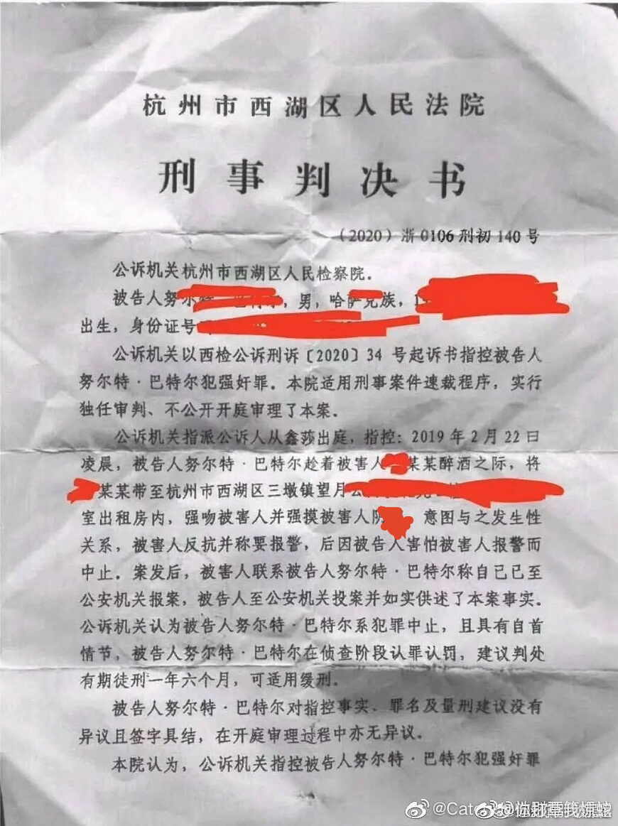 一份《浙江大学关于给予努××留校察看处分的决定》引起了网络热议。该处分决定显示,浙江大学2016级学生努某某因犯强奸罪,被杭州市西湖区人民法院判处有期徒刑一年六个月,缓刑一年六个月,而浙江大学给予了其留校察看处分。