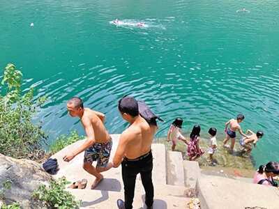 位于广州白云区龙归镇的六片山是一个深受“驴友”喜爱的户外行走路线。六片山上因采石坑聚集雨水形成的“天池”也吸引很多本地市民和外地游客前来野泳。7月22日上午,羊城晚报记者在六片山“天池”看到有游客野泳,其中不只有成年人,还有一些未成年人。在这里,也有人把宠物狗牵上山,在水中“人狗同泳”。