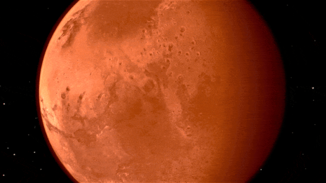 火星是一颗岩石行星,其固体表面已经被火山、撞击、风、地壳运动和化学反应所改变。