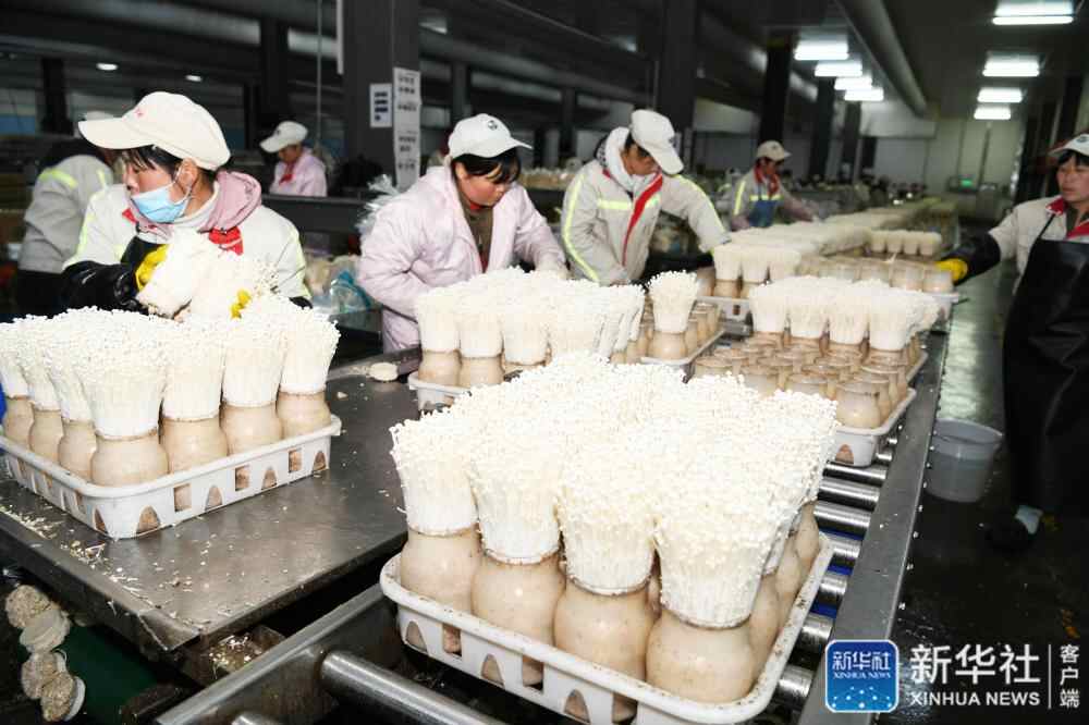 ↑工人在位于贵州威宁经济开发区的雪榕生物科技有限公司生产车间包装金针菇(2019年10月17日摄)。新华社记者 杨文斌 摄