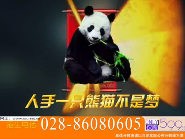据了解,视频由川大校友“无敌小阿七”制作,以独特视角介绍了川大的学校概况、办学特色、校园风景等。在调侃饭堂阿姨打饭不颠勺、学校特色“爬树课”等校园生活之余,以“川普课程免费送”“人手一只大熊猫”等幽默标语显示了四川地方特色。让观众眼前一亮的是,视频还运用了“不要749,不要699,只要599(分)”等购物广告语,加入“起床困难户”“豪华美景不重样”“够胆大鹅随你撸”等俏皮的网络用语。