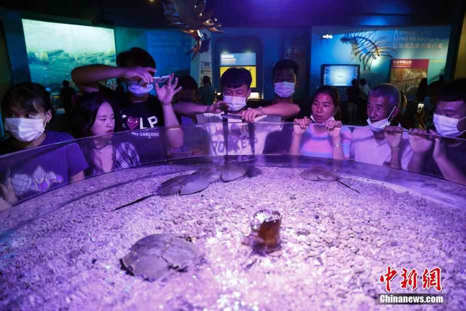 8月10日,云南省澄江市,民众欣赏“活化石”海鲎。