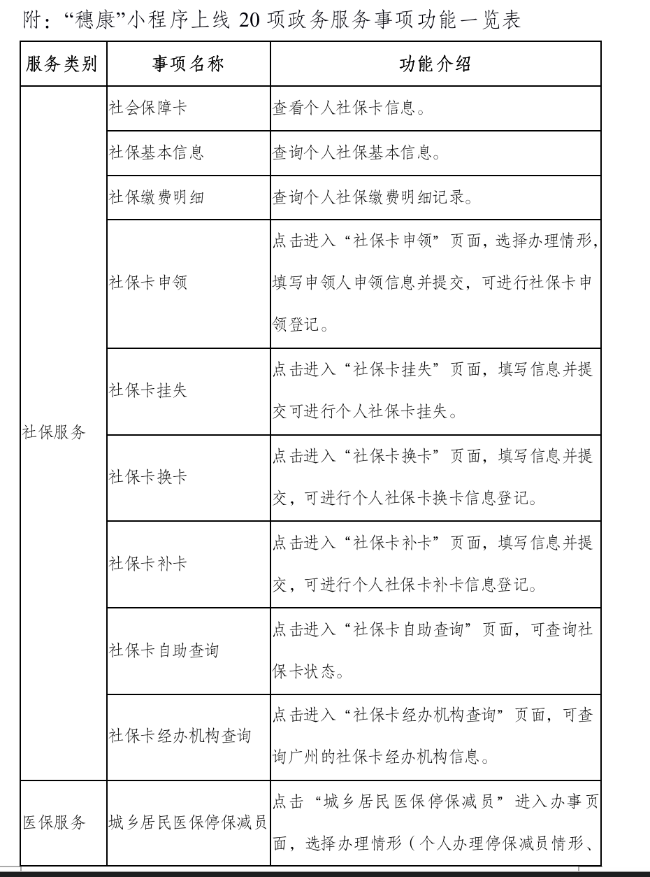 “穗康”小程序首批上线政务服务事项
