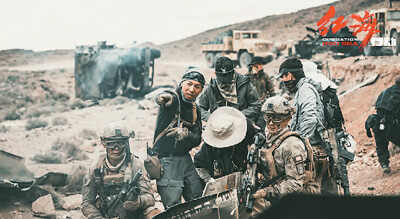 内地与香港合拍片《红海行动》拍摄现场,香港导演林超贤(左二)在导戏。