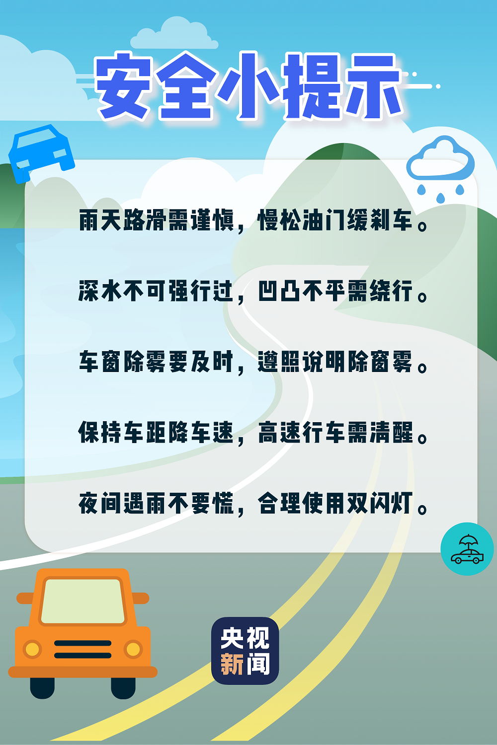 雨天行车,要么降低车速,要么加大与前车距离,不要猛刹车、猛打方向。