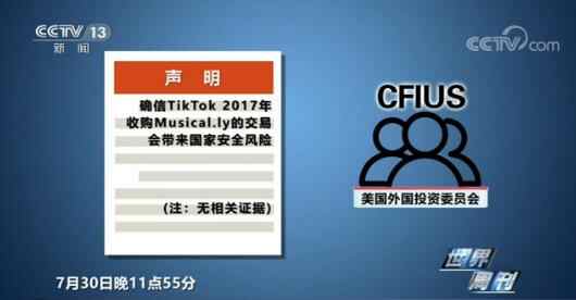 7月30日晚11点55分,就在距离该委员会法定审查期限仅剩5分钟的时候,外国投资委员会发表声明称:确信TikTok 2017年收购Musical.ly的交易会带来国家安全风险,但声明中没有提供相关证据。