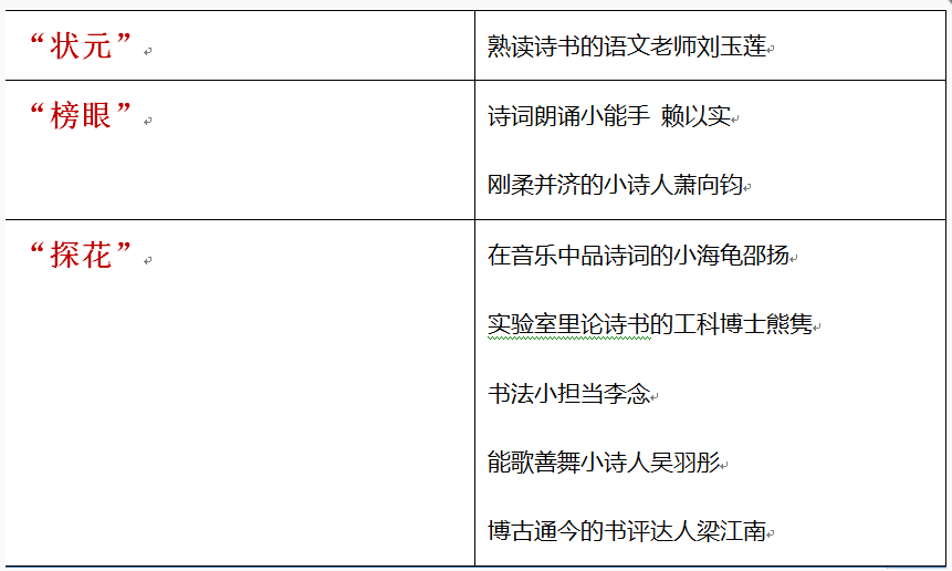 8月31日,第四届广州诗词挑战赛决赛在广州图书馆举行。经过紧张而热烈的比拼,熟读诗书的语文老师——刘玉莲摘下本次挑战赛的“状元”桂冠;赖以实、萧向钧获得“榜眼”称号;邵扬、熊隽、李念、吴羽彤、梁江南获得“探花”称号。