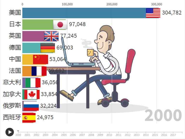 记者注意到,自2000年以来,科技期刊论文出产的前十位大国多数时间为美国、日本、英国、 德国、中国、意大利、加拿大等国包揽,只是排名顺序有所变化。2004年,中国成为第二,2016年超越美国排名第一,并在2017年、2018年继续保持优势。