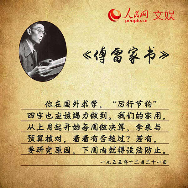 傅雷在信中纠正了傅聪的一些缺点,比如缺少计划性。他希望儿子做到“不分散精力”“重点学习”“多写信、多发表感想,多报告计划”,并提醒他厉行节约、防止浪费:“希望你也努力,因为你音乐会收入多,花钱更容易不假思索,满不在乎。”