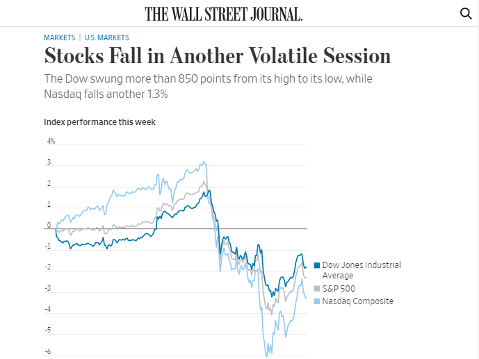 △《华尔街日报》称,美国股市在又一轮波动中下跌