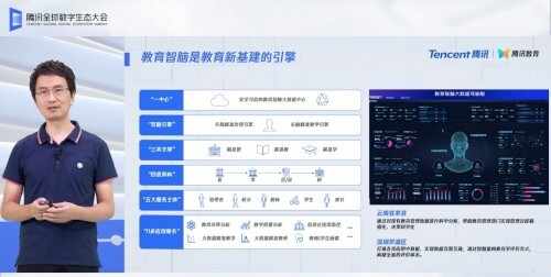 专场期间,腾讯教育正式发布了面向教学场景全流程的操作系统——腾讯教育智脑。腾讯教育智脑以统一身份认证为基础,以场景化教学工具为抓手,以结构化的知识图谱为支撑,助力教学全场景数字化,让教学当中的各个环节可测量、可优化,最终助力管理部门、家长、老师、学生实现一体化的精准管理、智能化的精准服务,陪伴式的家校沟通,以及个性化、多元化的精准教学。据王涛介绍,不同于传统教育大数据,腾讯教育智脑有三个特点:全面融合、深度思维、完整解决。其中,全面融合是指覆盖全学段、全角色、全维度、全场景;深度思维是指依托于心理学、教育学、认知科学来实现多元异构的教育数据建模;完整解决是指提供描述、诊断、解释、预测,以及精准资源匹配的闭环方案。