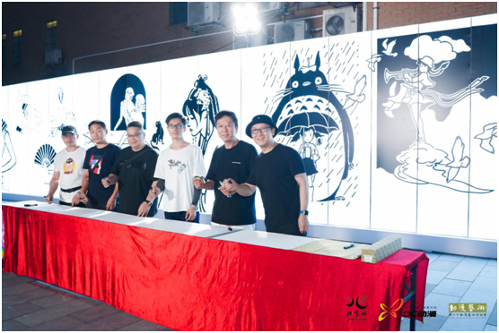 为庆祝千年古街北京路全新改造后的开街,金城等著名动漫艺术家们齐聚北京路圣贤里广场,以大众喜闻乐见的漫画形式绘出对北京路的祝福。据悉,该画作绘制完成后将被赠送给北京路文化核心区管理委员会以作留念。