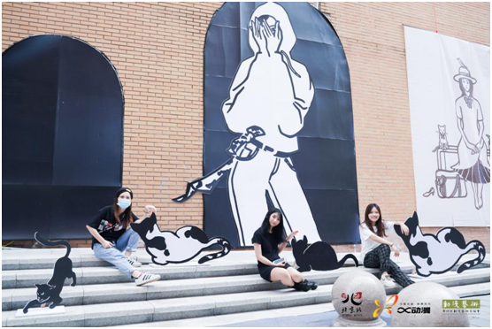“漫画中的小确幸——金城极简少女漫画展”是漫画活动的另一个重头戏。该画展以“人文·雅趣·自然”为理念,借古街较为核心的圣贤里地段,进行互动展示,通过一幅幅繁华都市中少女与猫、读书生活等画面,吸引行色匆匆的上班族或游客,让他们放缓脚步体验。其中,备受粉丝喜爱的一幅作品《馆花》,被制作为高达5m的大型户外打卡点,吸引众多观众拍照打卡。据了解,观众摆拍“馆花”同款造型姿势,还有机会获得精美活动礼品。
