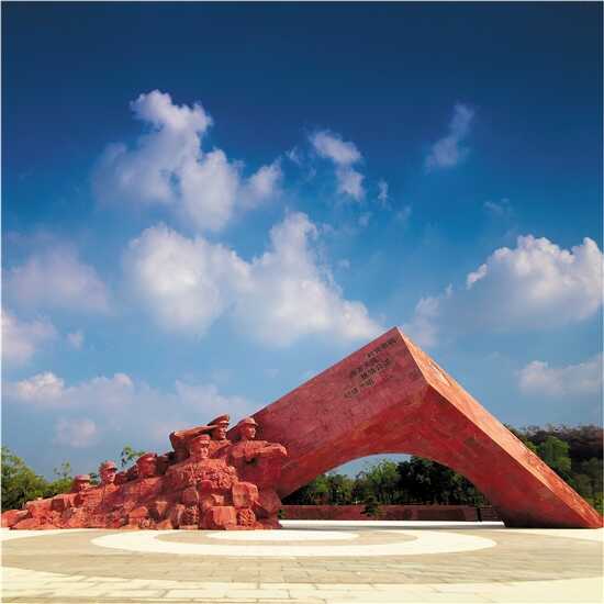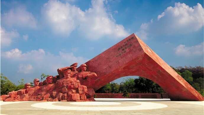 红砂岩雕刻英雄群像 “英雄墙”镌刻英烈名字