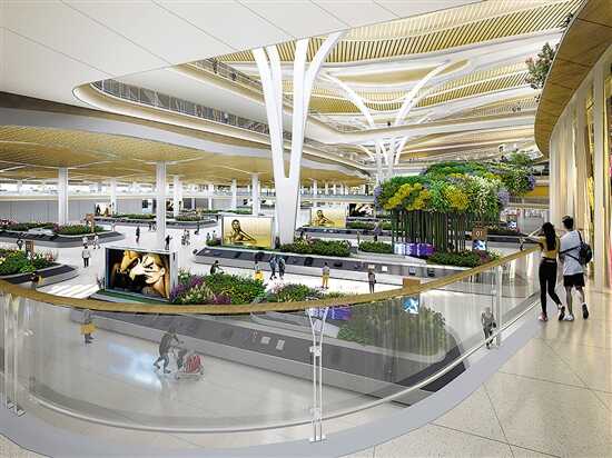 按设计规划,T3航站楼的拱形结构实现大跨无柱空间,结合先进的智慧化出行设施,会给旅客带来全新的出行体验。花园式的综合交通中心把交通与商业休闲设施结合起来,旨在打造一个充满活力、聚集人气的城市客厅。