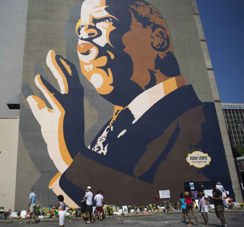 这是7月19日在美国佐治亚州首府亚特兰大市拍摄的美国民权运动领导人、民主党国会众议员约翰·刘易斯的画像。(新华社发/阿兰摄)