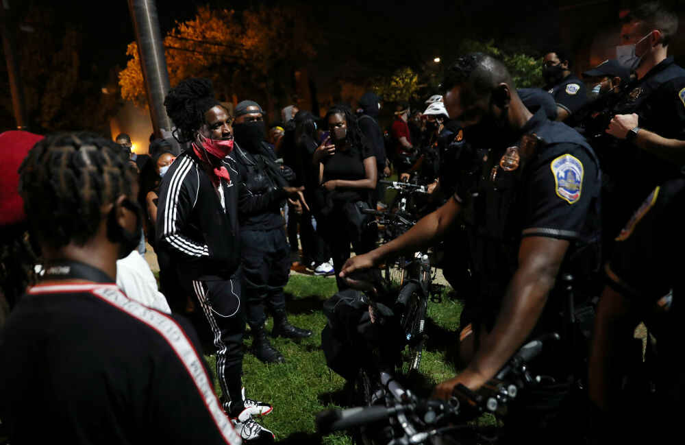 9月2日,抗议者在美国华盛顿街头与警方对峙。(新华社/路透)