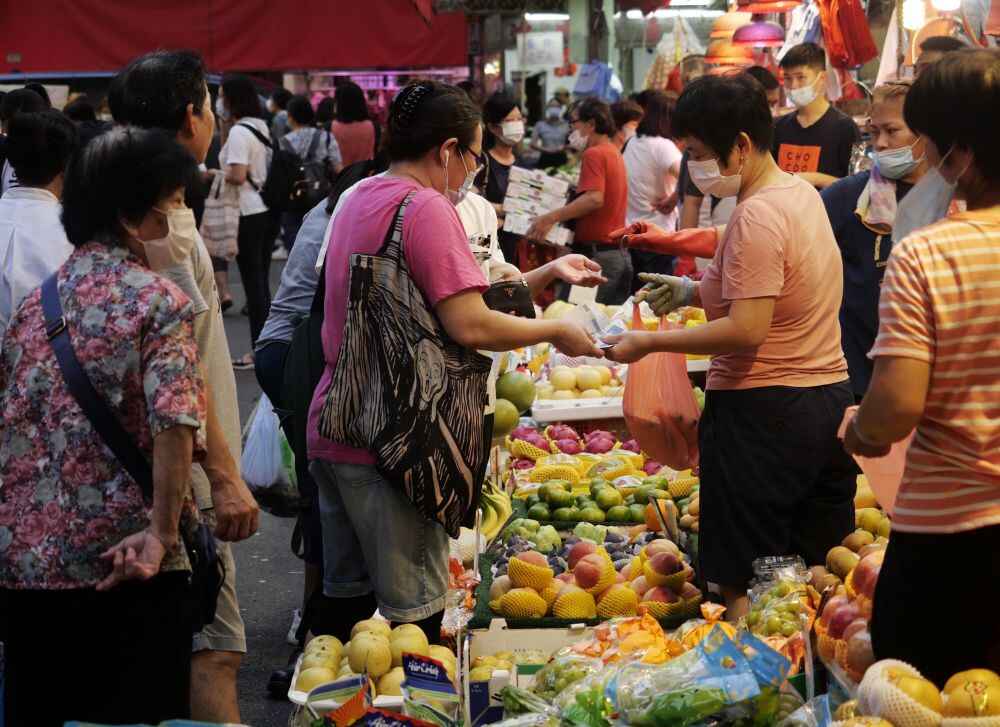 9月30日,在香港鹅颈街市,市民在买水果。 新华社记者 王申 摄
