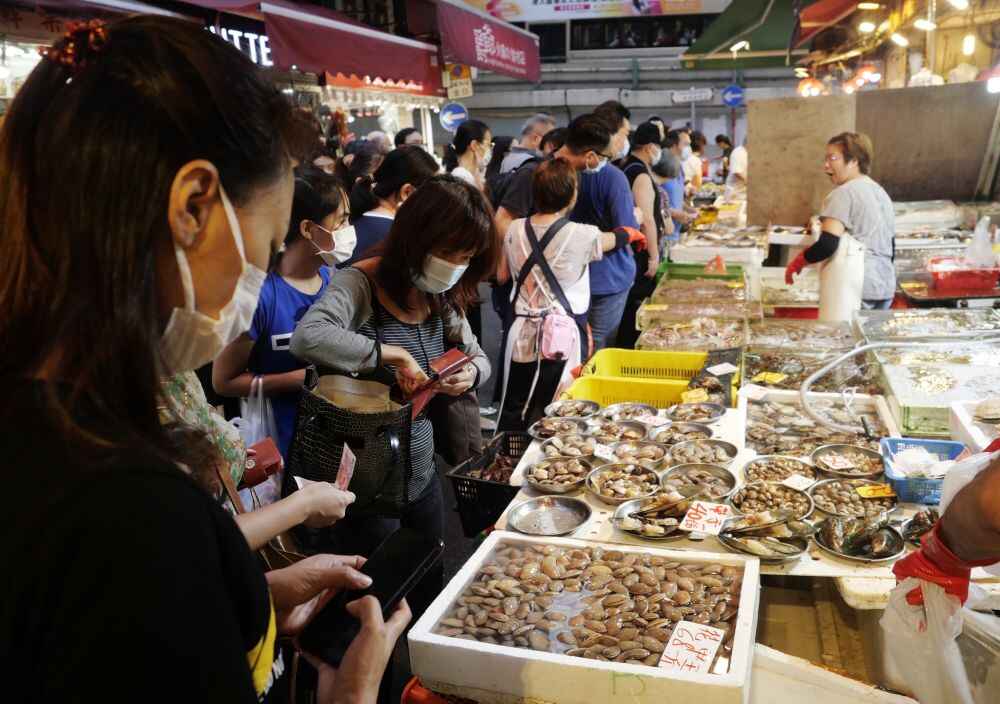 9月30日,在香港鹅颈街市,市民在买海鲜。 新华社记者 王申 摄