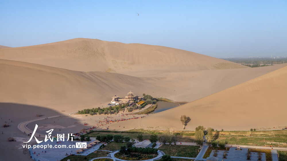 当下正值金秋沙漠旅游黄金季,甘肃省酒泉地区敦煌市鸣沙山月牙泉风景区迎来旅游高峰,大批游客尽情享受沙漠、胡杨林的大漠独特风光。肖学平/人民图片
