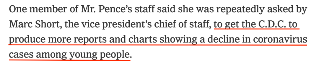 △《纽约时报》报道截图:疾控中心被多次要求拿出报告和图表,以证明年轻人中感染新冠病毒的病例数有所下降。