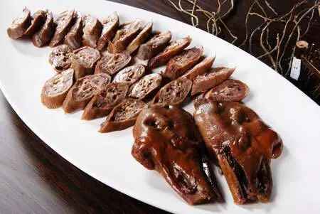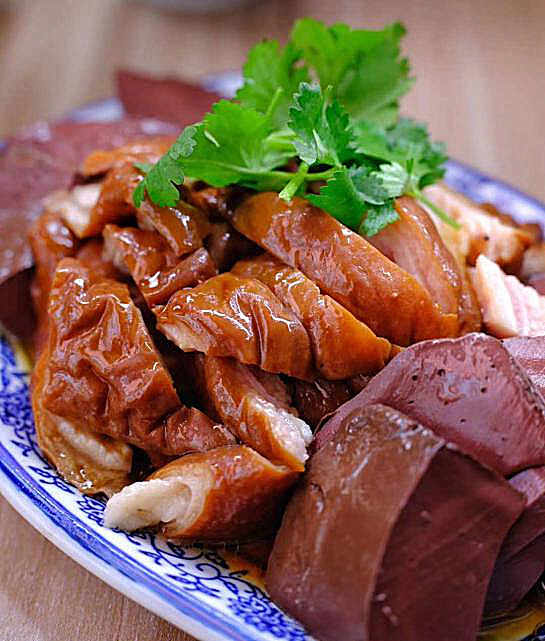 卤鹅是传统美食,而卤鹅头更是传说中潮州的“劳斯莱斯”,鹅冠软、鹅脑甘甜、鹅舌筋道,尤其是鹅冠和腮部富含胶质。图为潮皇食府的“澄海老鹅头”,在去年曾夺得“中华潮菜最佳创意卤水老鹅头奖”
