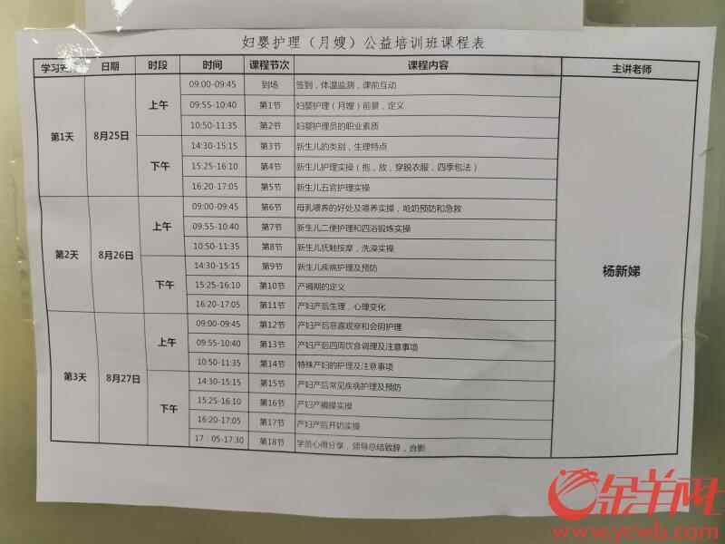 上坪镇政府也主动邀请杨新娣将公益课开到镇上,在刚刚过去的9月,杨新娣的公益课在镇政府举办,有100多人前来参加培训,经调查其中有一半以上的人有意向从事月嫂事业。