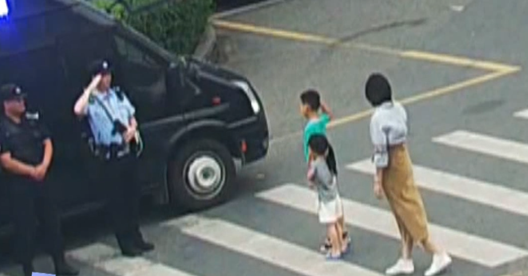 “向警察叔叔敬礼!”小男孩举起稚嫩的小手,小涂迅速站直,回敬了一个标准的礼。