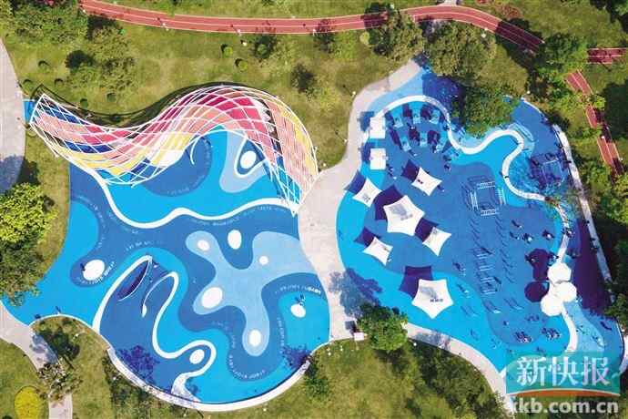 据悉,体育公园内保留了带有城市记忆的大榕树,同时,新增了开花树种。“主要以秋季开花和春季开花的树为主,包括异木棉和细叶榄仁。此外,利用疏林草坪和运动地垫打造出蓝色海洋景观。从广州塔俯瞰,与广州大桥东侧的宏城公园花瓣造型遥相呼应,美不胜收。”