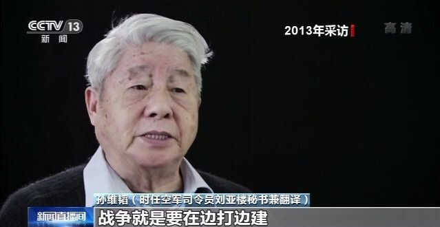 孙维韬(时任空军司令员刘亚楼秘书兼翻译):连那个苏联专家都不敢相信,就你们这飞行员上去全部送死的。刘(亚楼)司令员说我们等不及了,战争就是要在边打边建,在战争中学习战争。