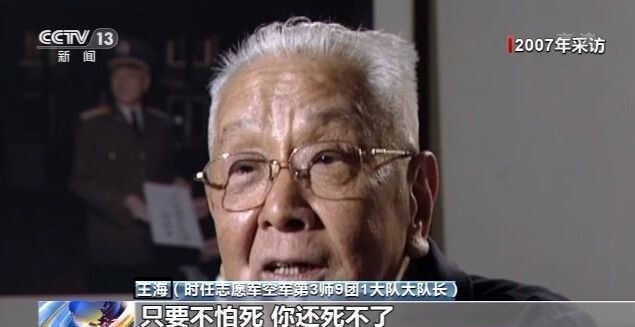 王海(时任志愿军空军第3师9团1大队大队长):我们胶东有一句话,老子不怕死,脑袋瓜子别在裤腰带上,只要不怕死,你还死不了,越怕死的人,就先死。我的意思就是这个。对不对?我就想的是,你美国的也是一个人,我们中国人也是一个人,而且我们那个时候是毛泽东思想培育成长起来的,对不对。老子不怕死,什么都没有,所以说我带着的大队,没有一个孬种。