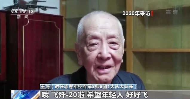 王海(时任志愿军空军第3师9团1大队大队长):哦,飞歼-20啦,希望年轻人,好好飞!