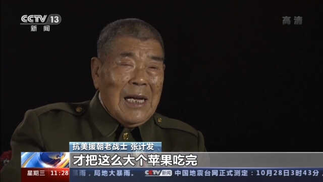 抗美援朝老战士 张计发:大家谁也舍不得多吃一点,我们八个人,整整转了三圈,才把这么大个苹果吃完。