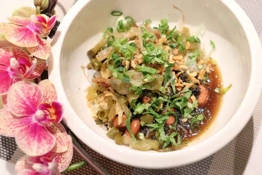 为更好提升旅客用餐体验,满足不同旅客味蕾,休息室特别推出海南特色小吃“海南拌粉”。海南拌粉多味浓香,柔润爽滑,加一点辣椒酱更加鲜辣香醇,吃到还剩少量粉时,加入一小碗热腾腾的特制清汤,更是满口喷香,回味无穷。休息室从特色原材料到调味配比,都精心调制,力求为旅客呈现原汁原味、纯正鲜美的海南风味。